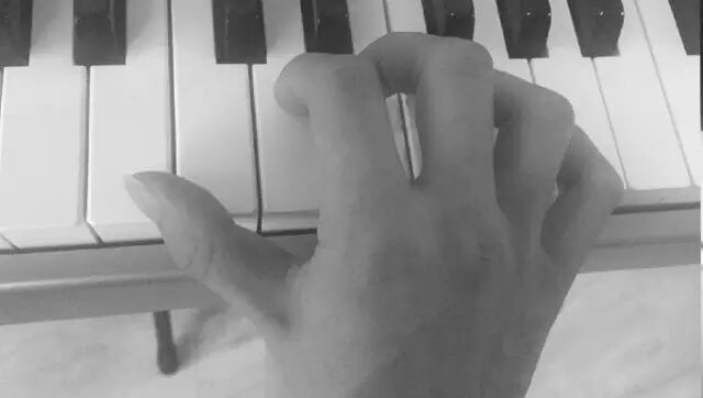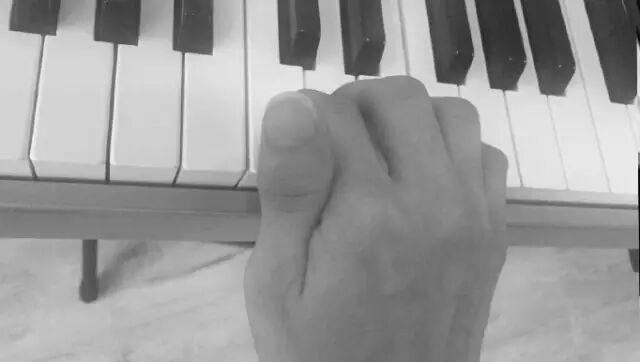 其实,弹琴最放松的手型和人睡觉时的手型是一样一样的,手臂自然下垂,手指所有都是向凸出的,虎口自然张开,你仔细想想是不是?