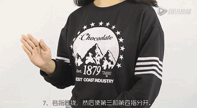6、轮流使每个手指向侧面张开,距离尽可能张大。